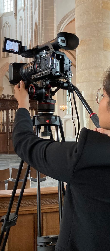 De familie had een pianist en zangeres geregeld, en wilde dat ook mensen die niet konden komen dit konden beleven. Met meerdere camera’s, goed geluid en een discreet geplaatste microfoon bij het altaar konden we dat prachtig vastleggen.