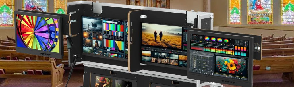 Beeldschermen voor foto’s, video’s of teksten tijdens de dienst
